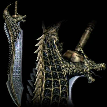 „Ein exquisites Langschwert, das seinem Namen alle Ehre macht. Seine Klinge ist so scharf wie die Reißzähne des Drachen selbst.“