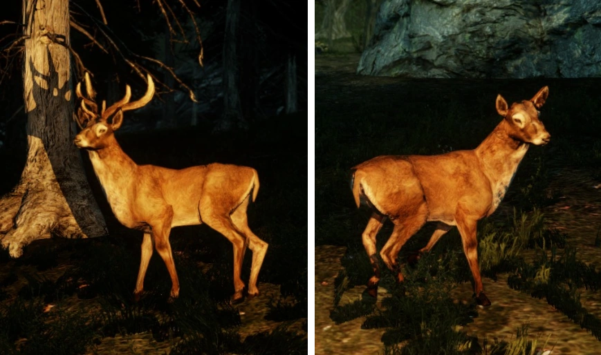 Sie bewohnen Wiesen und Wälder und sind neben den Menschen die einzigen Lebewesen in der Welt von Dragon's Dogma, deren Geschlecht man durch äußerliche Merkmale unterscheiden kann. Die männlichen Tiere (Hirschböcke) sind größer als die Hirschkühe und tragen ein Geweih.