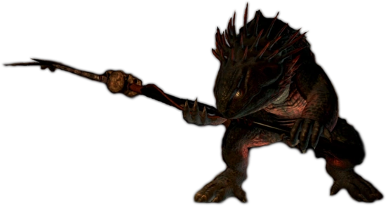 | Speerwurf | Physisch | Wirft dem Gegner den Speer entgegen, als letzten Ausweg, bevor die Echse die Flucht ergreift. |
