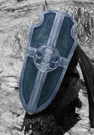 Ein ähnlich designter Schild wird von Skelett-Lords und Soldaten in der Heruntergekommenen Manse getragen, die als Mystische Ritter kämpfen.