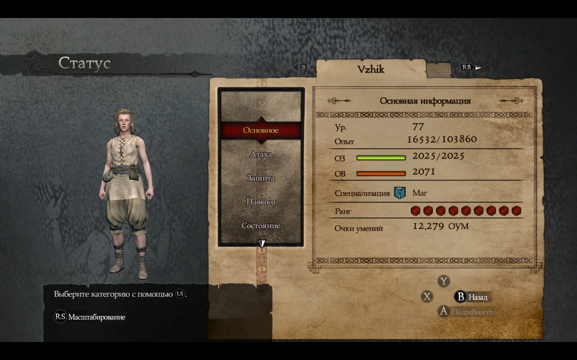 Отображение статистики в меню с отображением специализации, ранга, уровня, Очков опыта и других характеристик.