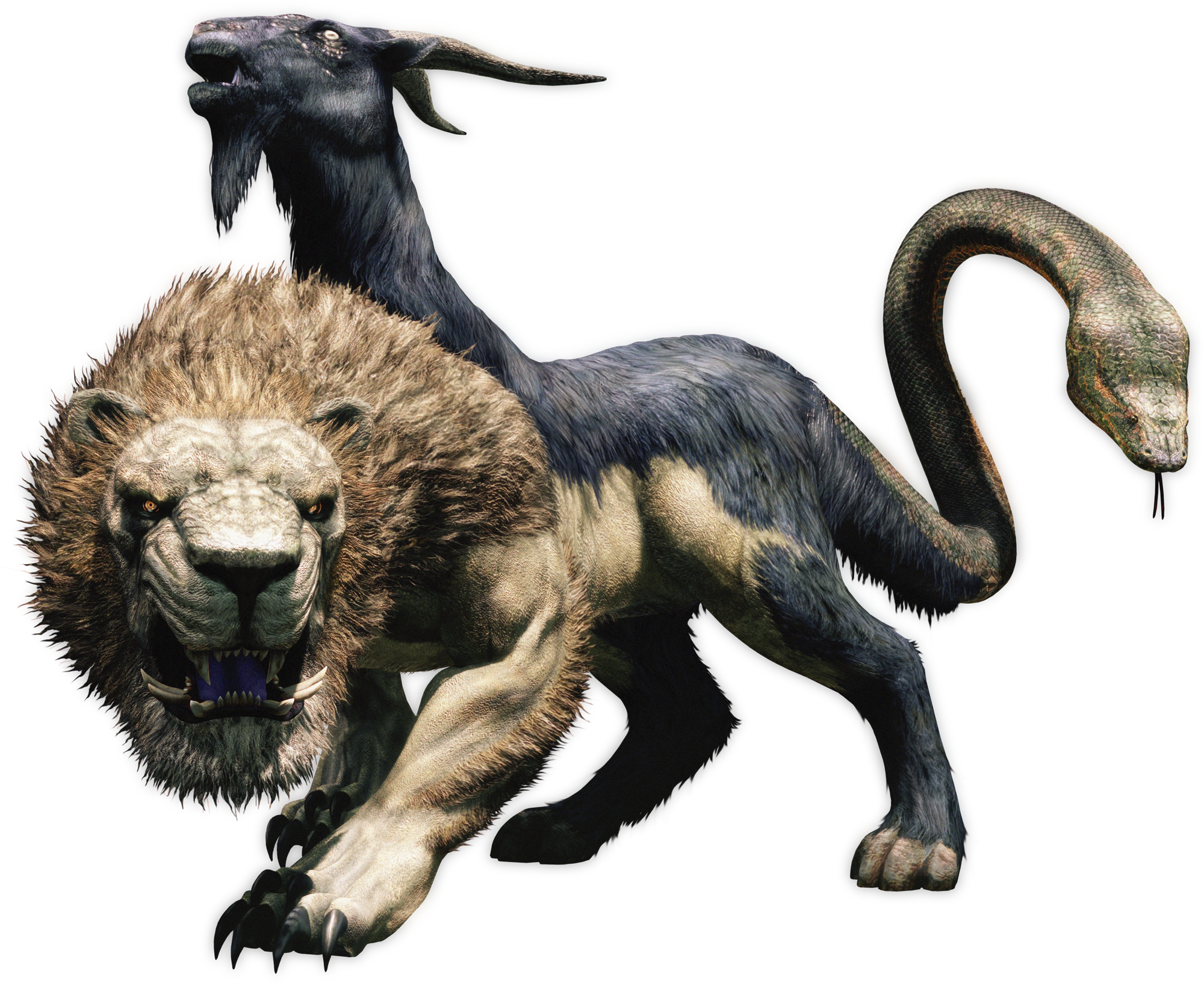 Это большое трехголовое существо, состоящее из трех животных: спереди голова льва, которая в основном атакует в ближнем бою, на спине голова козла, который читает магические заклинания дальнего действия, и змеи для хвост, который атакует врагов, вступающих в ближний бой или забирающихся на него.