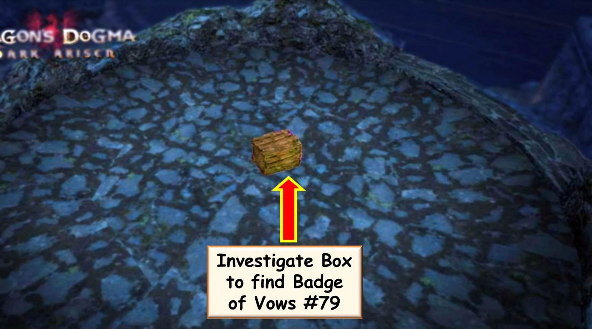 In the original Dragon's Dogma, Badge of Vows 79 is obtained as part of the From A Different Sky - Part 8 DLC quest pack, in Dark Arisen, the quest is included in the base game.