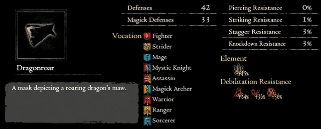 - Dragonroar provides the best total bonus to both Strength and Magick of all head gears.