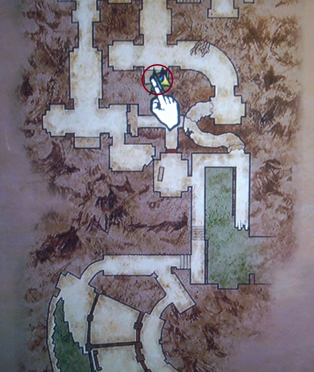 In the central area in the upper balcony alcove. There is a big balcony that hangs over the north side of the room. The only way to obtain it is by using a long jump from the east upper balcony up this slanted boulder and jump from there on to the balcony. On the opposite side is an "alcove", jump from the balcony to the alcove.