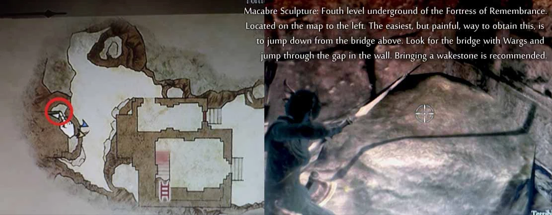 Fourth Level Underground. Go all the way to the west, past the room with two chests. Facing the bottom of the large bridge above, climb the mound of rocks to the right of the bridge - there's a mining spot there for reference - the Sculpture appears there. Long jumps (see jumping) are recommended, or a really fast (but painful) jump off the right side of the second level bridge near the door.