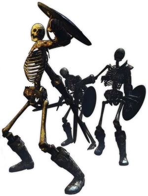 Skeletons are reanimated bones of former soldiers - their flesh and clothes have long since rotted away leaving only bone and metal to do hostile intent to any that pass by.
