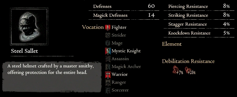 - "A steel helmet crafted by a master smithy, offering protection for the entire head."