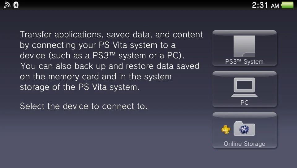 (4) Use the Content Manager app on the PS Vita to transfer the pictures. Choose PC =====> PS Vita System.