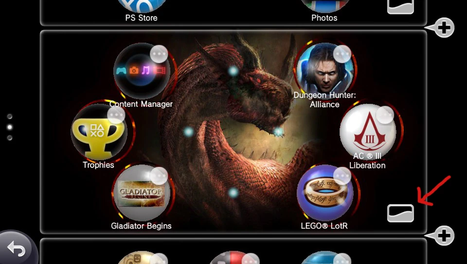 (5) Go to the main menu section of the Vita. Touch and hold somewhere on the home screen until the edit window appears.